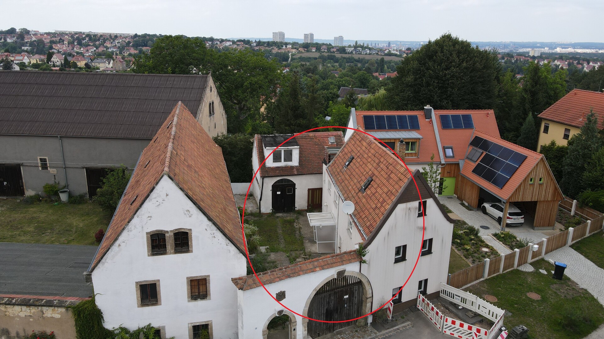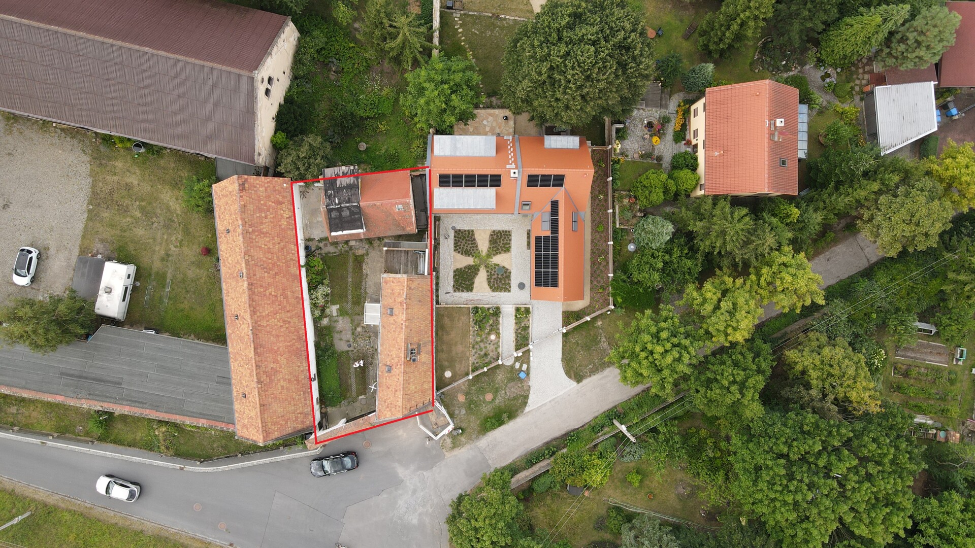 Auf dem ca. 330 m² großen Grundstück befindet sich ein Anbau inkl. einer Garage. Der Anbau könnte saniert, an das Haupthaus angegliedert oder abgerissen werden.