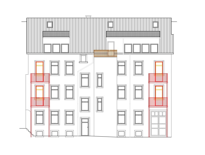 Es besteht die Möglichkeit, Balkone im Hofbereich anzubringen.